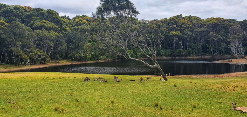 This gem of a campsite next to the tiny village potato point has beautiful spacious pitches right on the beach. There is an abundance of wildlife all around, with kangaroos, wallabies and emus roaming freely around the grounds. Watch out for red bellied black snakes, too! We saw lots of signs warning for snakes, but we didn’t actually see any when we were camping here.
