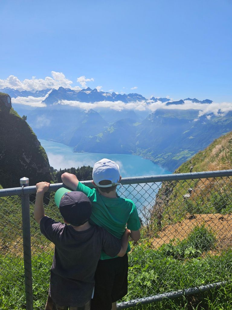 The longer version of this walk is the stunning Fronalpstock Ridge Walk. It has some steep drop-offs, but it could be suitable for kids with hiking experience from 5/ 6 years old. We did it this summer with our boys, who are 7 and 5 and a half, and they did brilliantly. Read about the walk here.