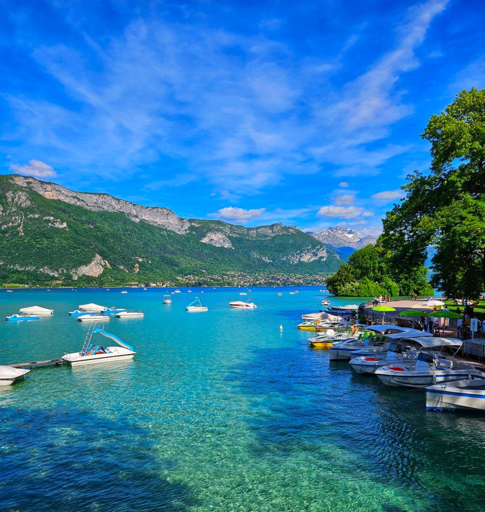 Lake Annecy takes its name from the town of Annecy located on its northern shore, and it is a beautiful 9 mile long lake in the French Alps, next to the Swiss border. It’s waters are clear and cool and considered to be the clearest and cleanest lake in Europe.