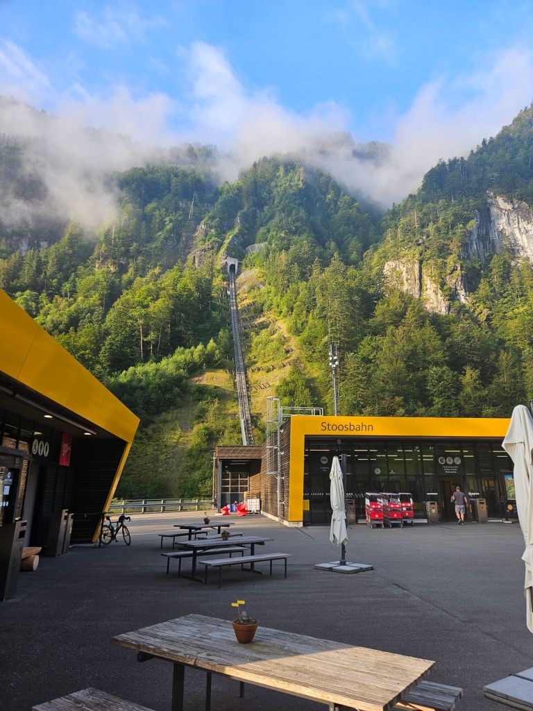 We wanted to make sure we got an early train to Stoos (a car free village). We rode the funicular train to Stoos ( the steepest in the world!) Which was a fun experience for the boys.