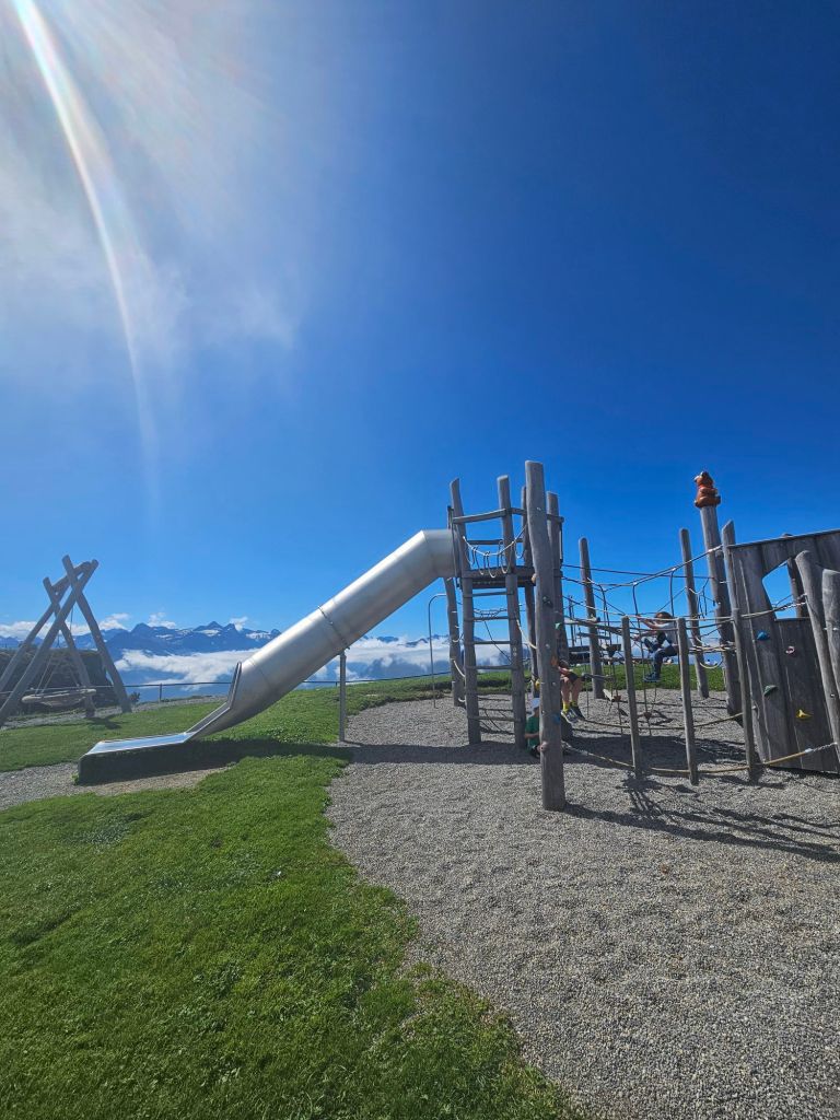 Fronalstock station, playground, and cafe was busy as there were lots of families that come for the playground and viewpoint and shorter panorama walk ( 1k from Fronalpstock station part way along the ridge)