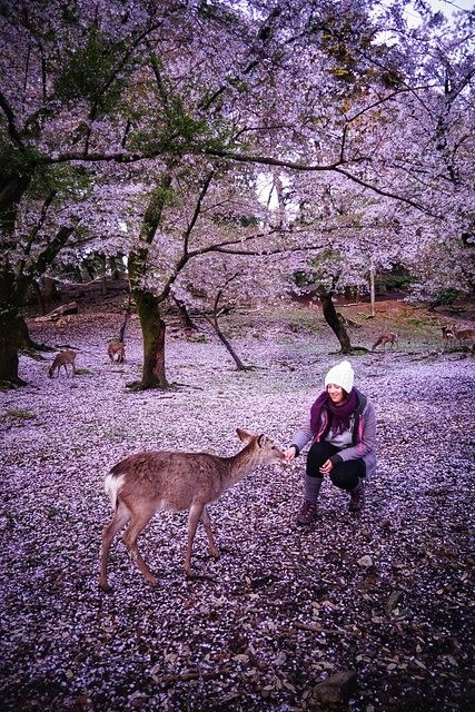 Nara is another must visit, magical feeling place for experiencing historic Japan. Nara is a short 45-minute train ride from Kyoto. There are many temple complexs that you can walk around, the atmosphere is calm and serene, and the temples and shrines are surrounded by lots of parkland. In the parklands, you will undoubtedly see friendly, free-roaming deer. Home to some of Japan’s oldest and most significant temples, we visited the massive Todai-ji with its giant Buddha: until 1998 it was the biggest wooden structure in the world which gives you an idea how large it is! The deer, considered sacred, freely wander around Nara Park. When we visited in April, the deer were munching cherry blossom off branches that had fallen from the ground, and would even eat cherry blossom from your hand. With its blend of culture, nature, and friendly wildlife, Nara is a must-visit, and for those travelling with children, they would absolutely love it!