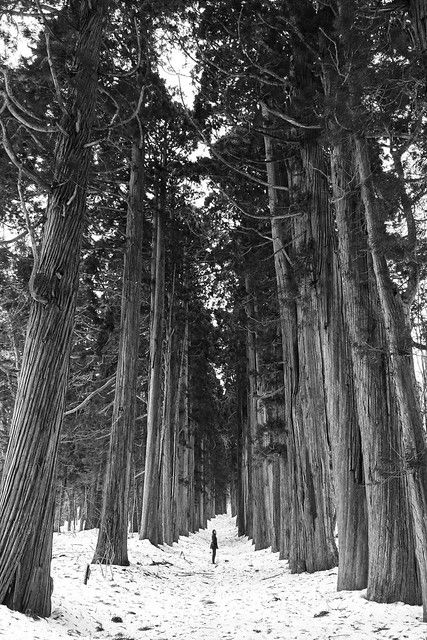 When we visited Nagano in early spring, the weather was overcast, cold and snowy, which added to the mystical atmosphere. Nagano is a skiing and winter sports destination in Japan.