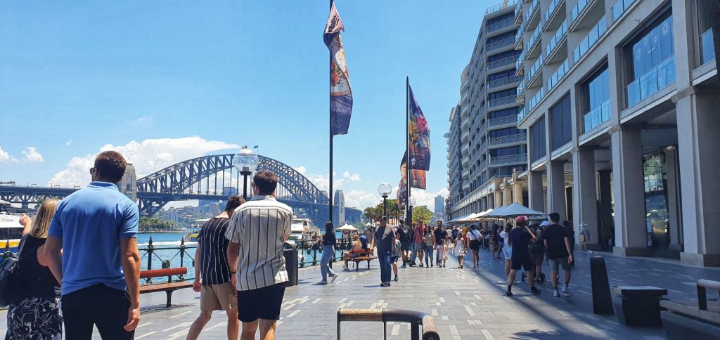 Get the tram to Circle Quay. When you get off you will be in the heart of tourist Sydney, bustling with people from all over the world, who have come for the iconic views of Sydney Harbour, the bridge, and the opera house.