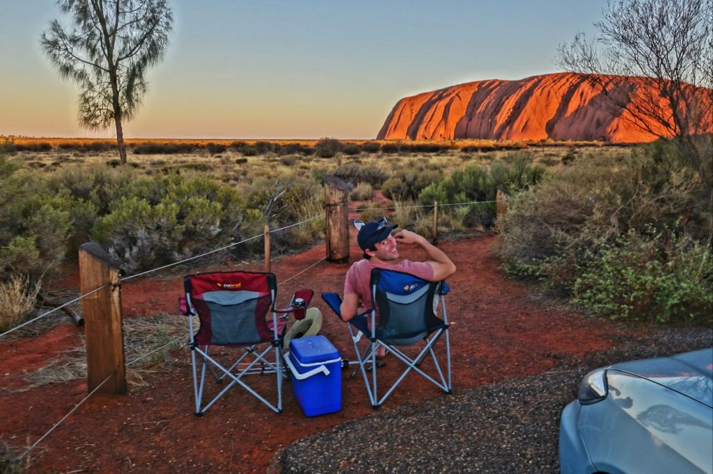 The massive sandstone monolith Uluru, which is also known as Ayers Rock, appears to be different colours at different times of the day – we went to walk around it in the daylight (the heat was brutal) and later in the evening pulled out our camping chairs, coolbox and watched the sunset from one of the viewing area where you can park your car – we got there in good time to make sure we got a good spot.